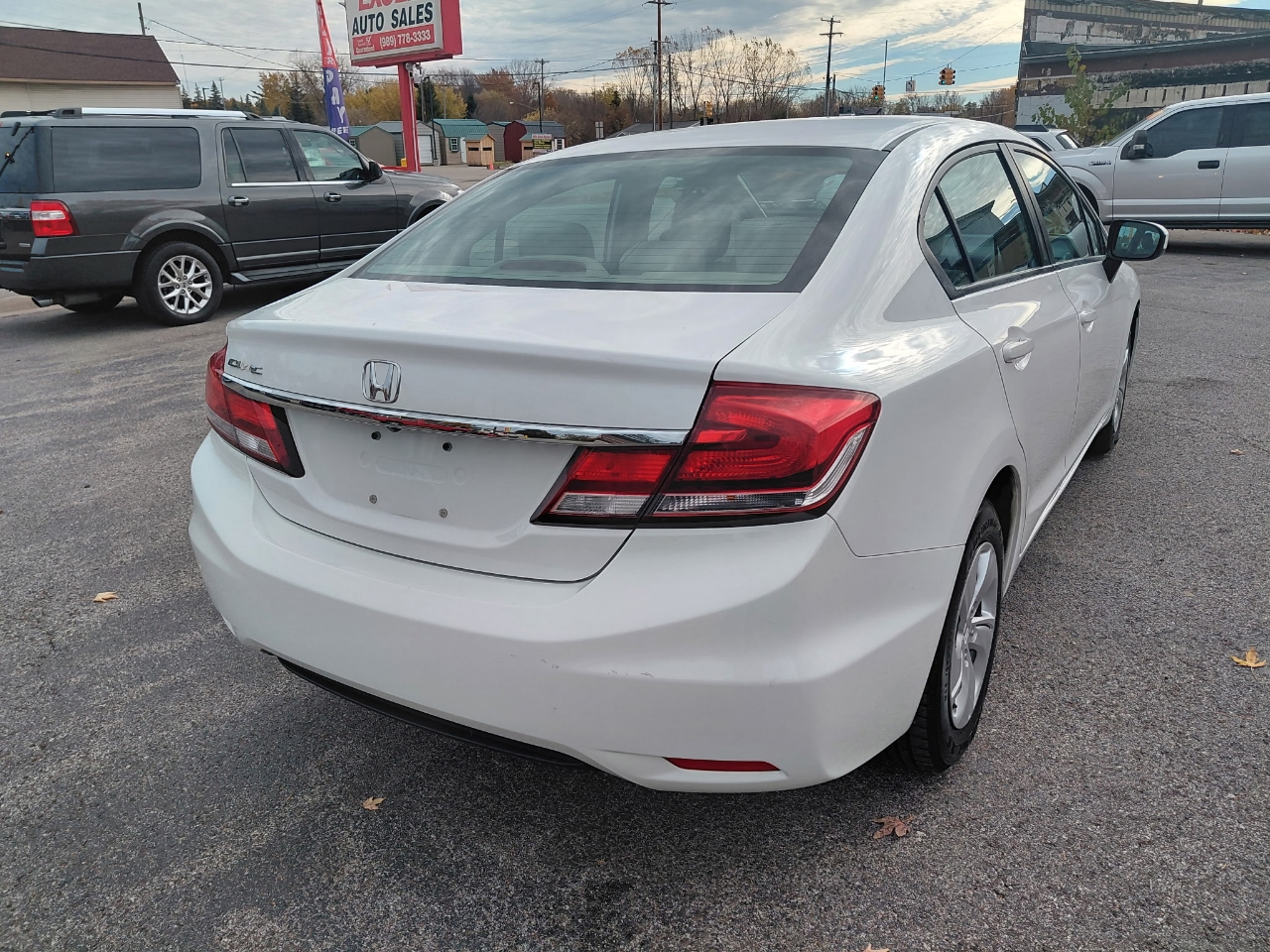 Zoom around town in style with this sleek White 2015 Honda Civic! Equipped with modern conveniences and safety features, this car is sure to make your daily commute a breeze. Enjoy the comfort of front heated seats during chilly mornings and take advantage of the backup camera for easy parking. Stay connected on the go with Bluetooth capabilities and jam out to your favorite tunes with the satellite radio. With a carfax report available, you can trust that this vehicle is in top-notch condition. Cruise control, power windows, and power steering make driving this Honda Civic a smooth and enjoyable experience. Whether you're heading to work or embarking on a road trip, this reliable car will get you to your destination safely. Don't miss out on the opportunity to own a quality vehicle with all the essential features you need. Grab the keys and hit the road in this fantastic Honda Civic!